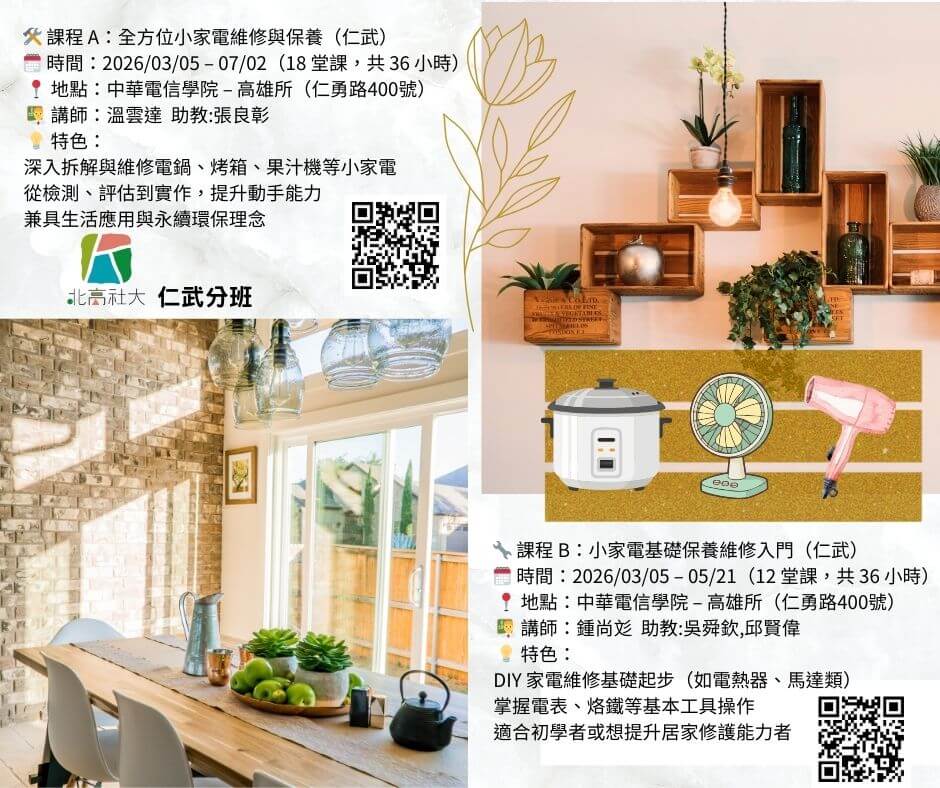小家電基礎保養維修入門(仁武)